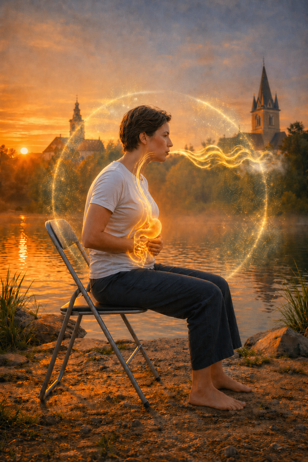 Belégzéskor vigyük a figyelmet a lépbe, a hasnyálmirigybe és a gyomorba. Képzeljük el, hogy ragyogó sárga fény tölti be ezeket a szerveket, és vele együtt megjelenik a nyíltság, az együttérzés, az összpontosítás és a belső rendezettség minősége.