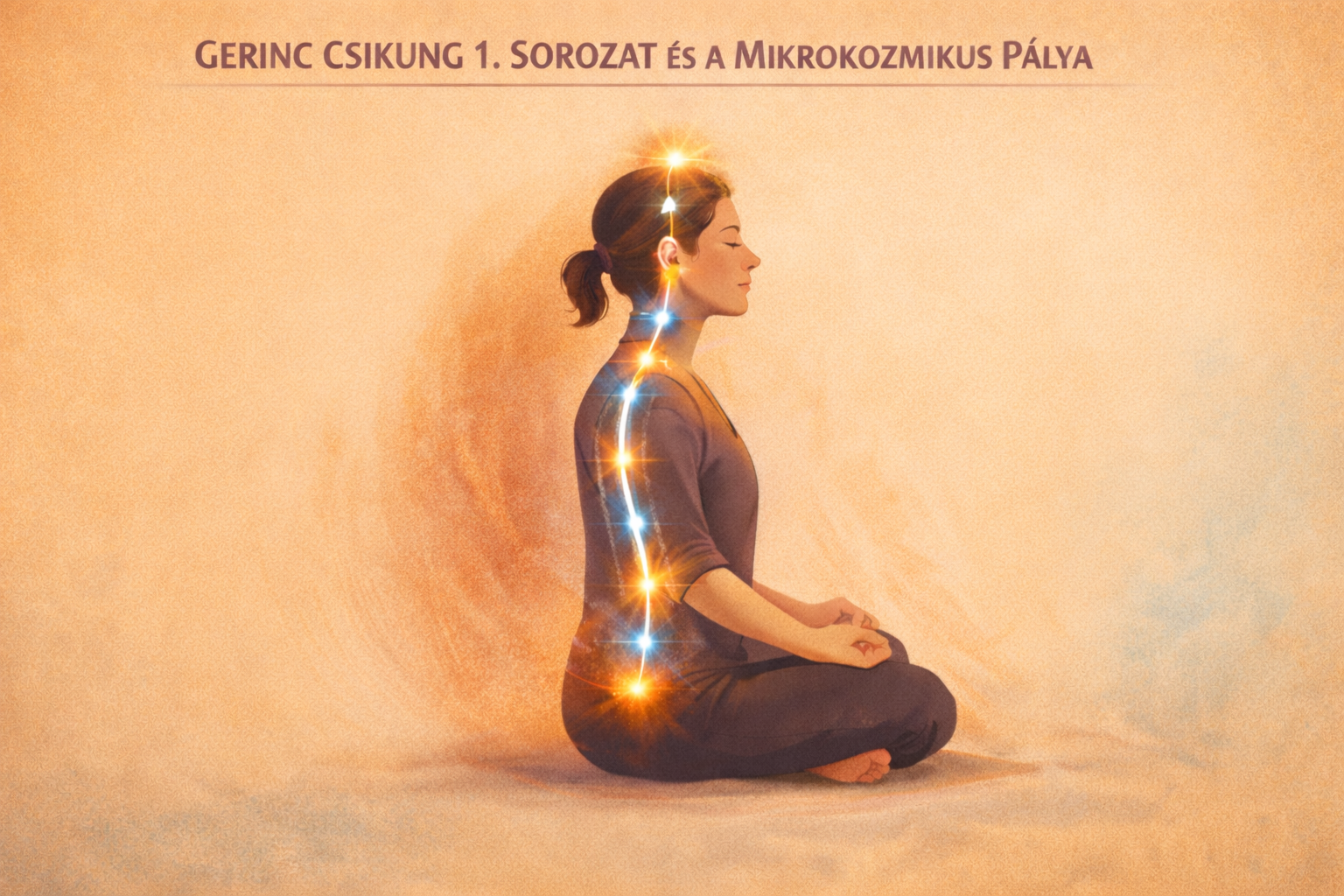 - Nyitás oldalra, mindkét kéz a keresztcsonton, előredőlés belégzéskor, visszaegyenesedés kilégzéskor, a meleg halad a gerincen.